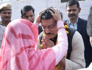 कर्नल राज्यवर्धन राठौड़ ने किया वीरांगना के चरण स्पर्श कर सम्मान