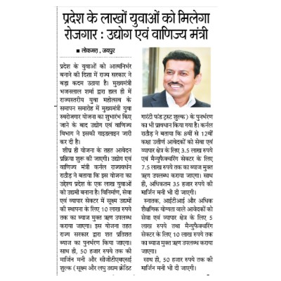 प्रदेश के लाखो युवाओं को मिलेगा रोजगार: उद्योग एवं वाणिज्य मंत्री