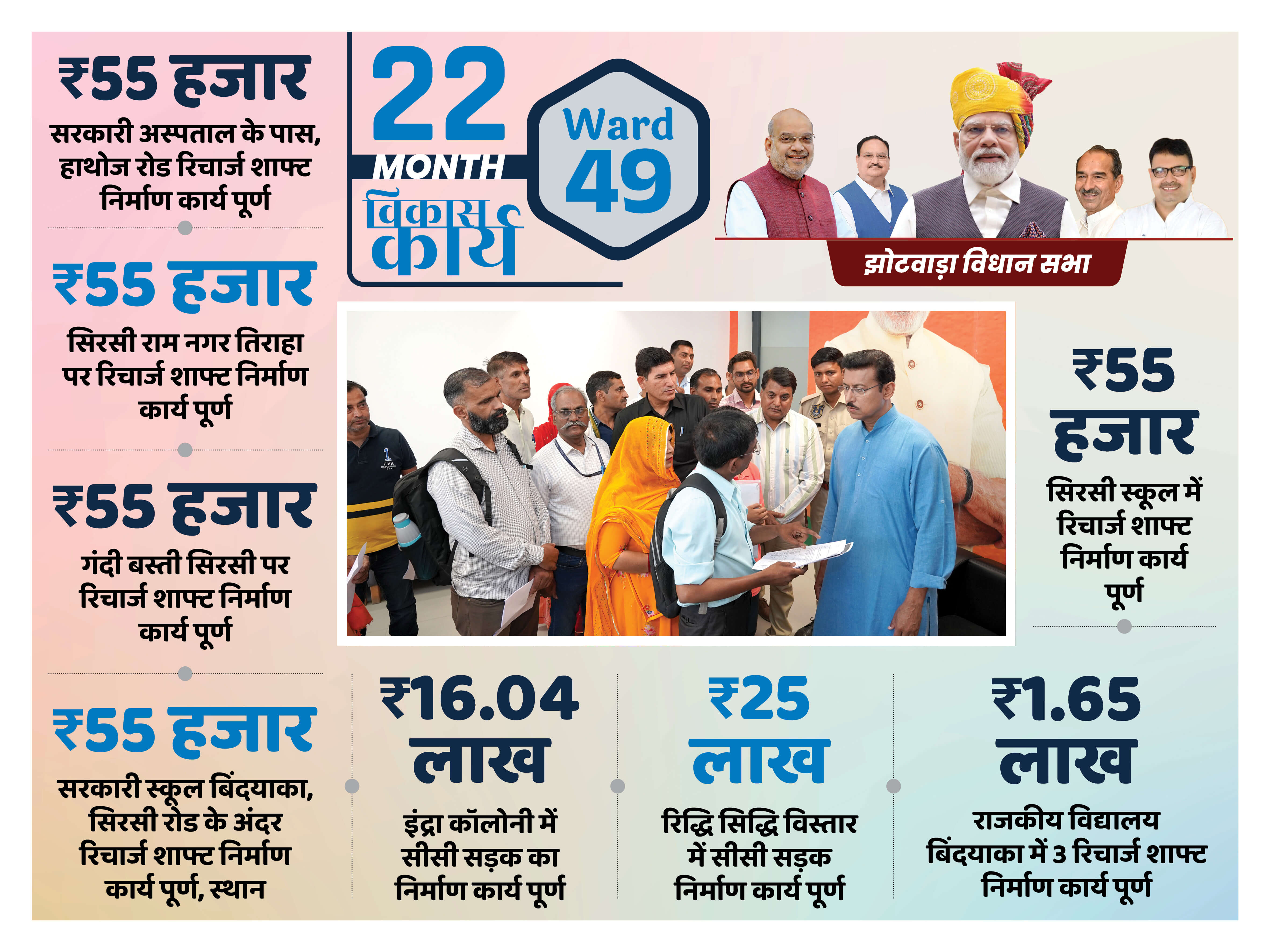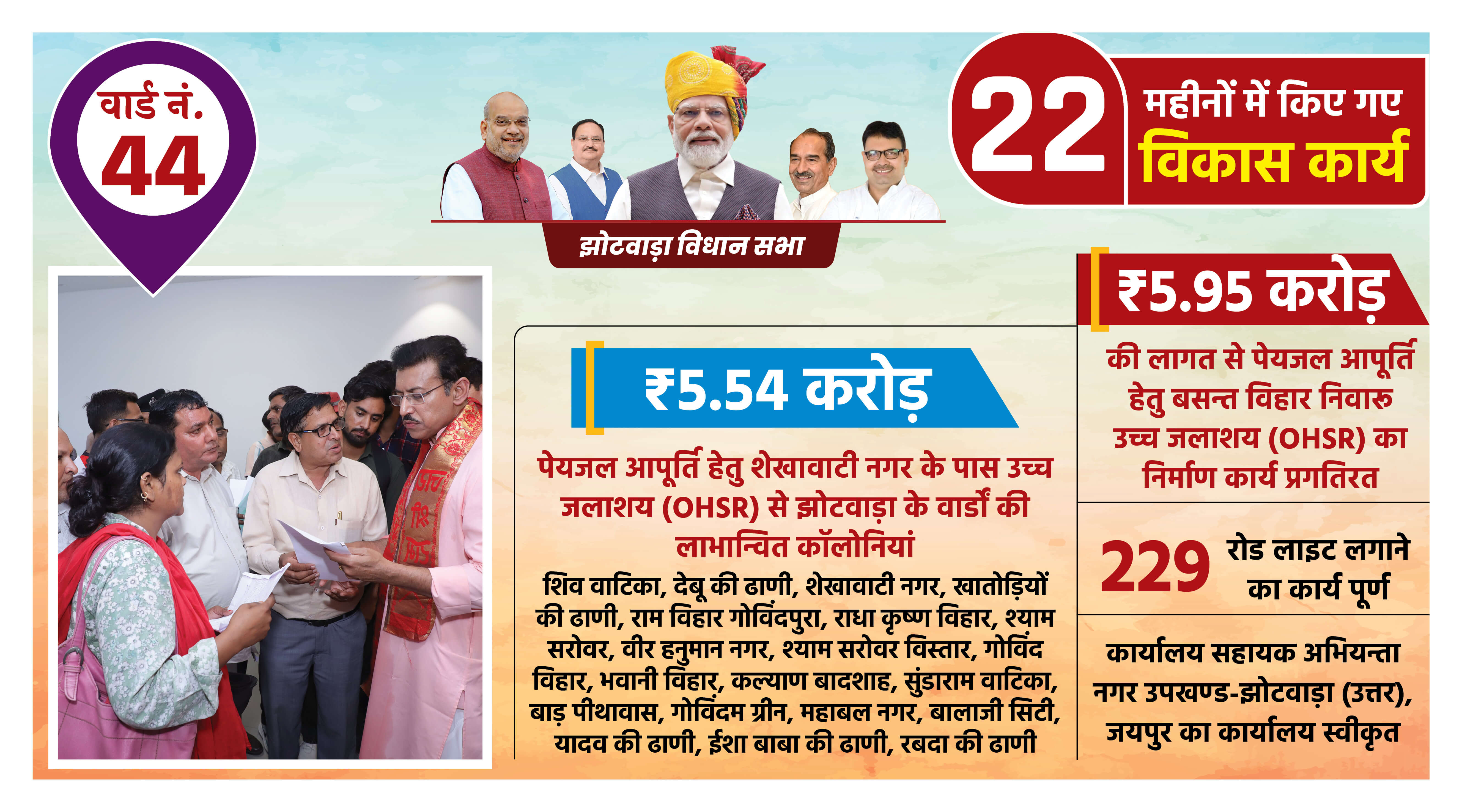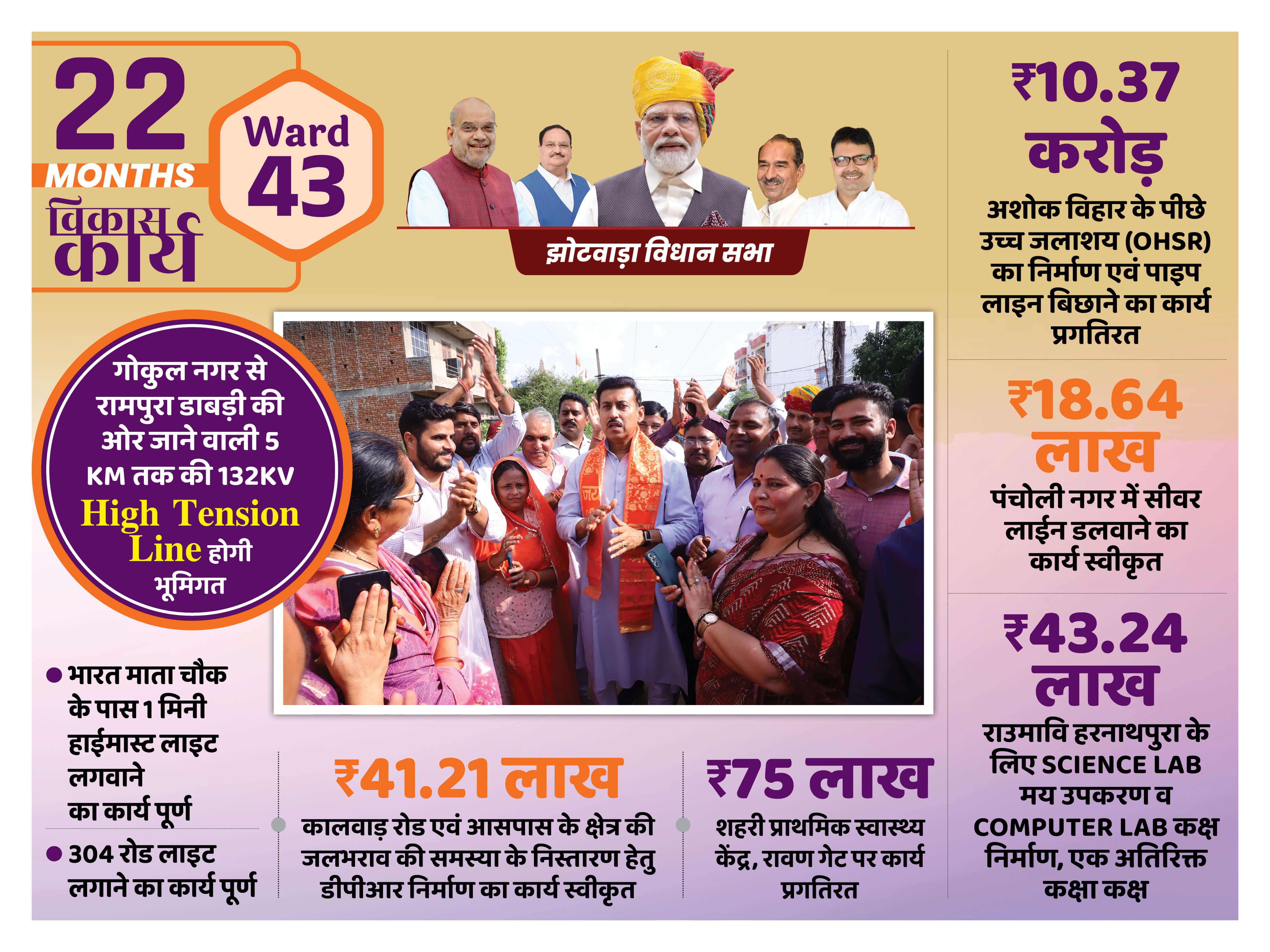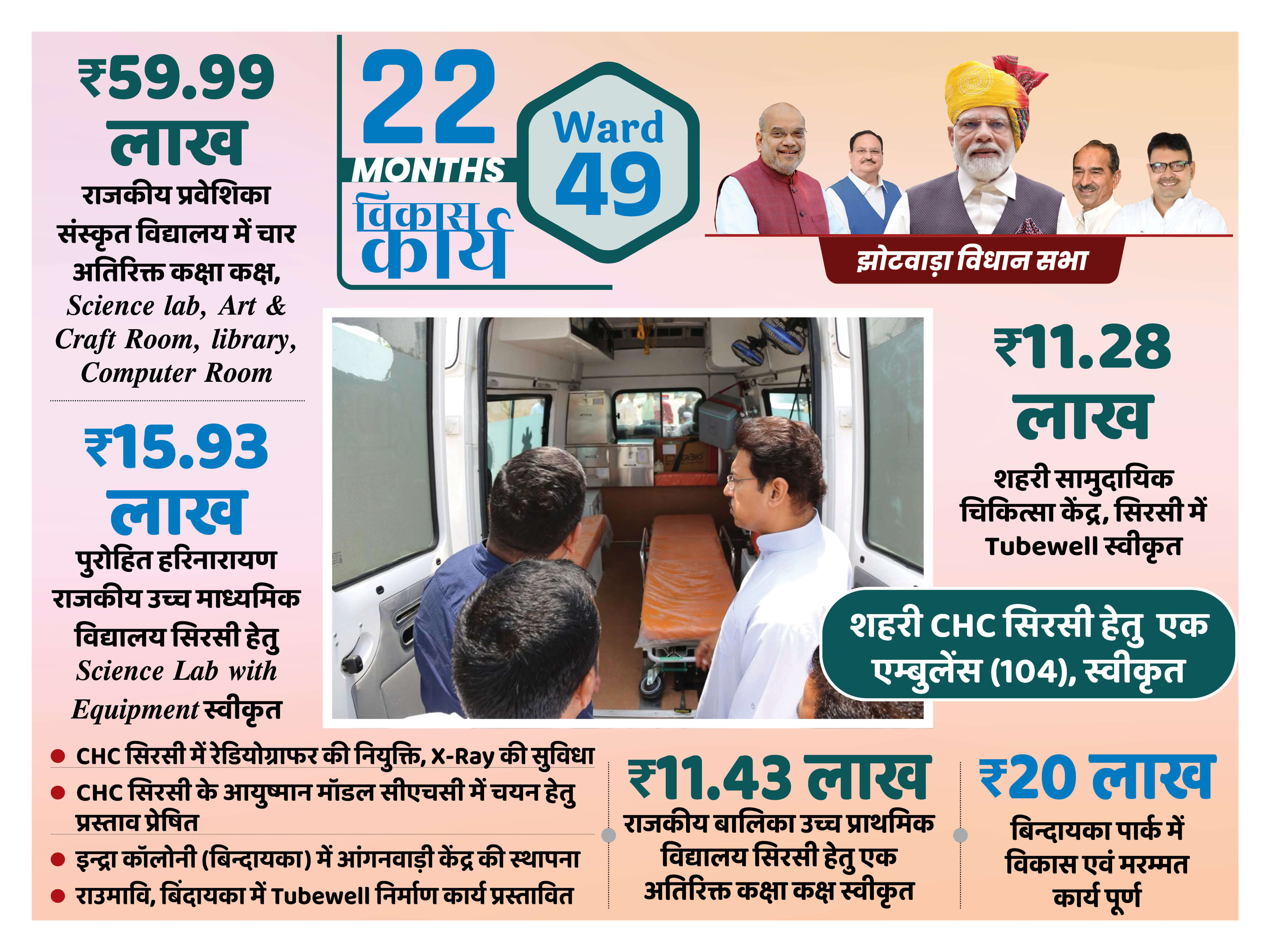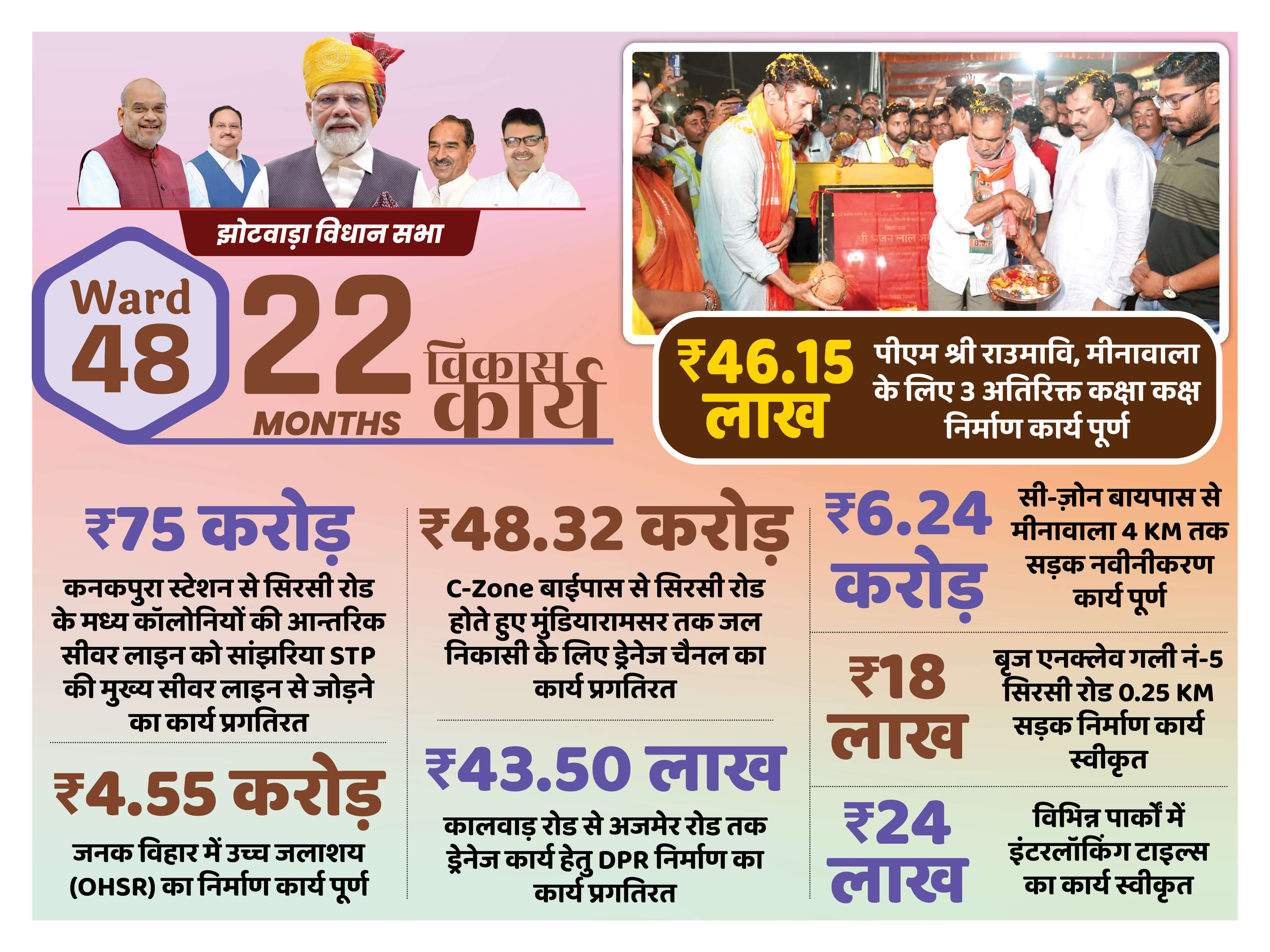 सबको बेहतर शिक्षा का अधिकार झोटवाड़ा के 14 राजकीय विद्यालयों में छात्रों को बेहतर शिक्षा व परिवेश प्रदान करने ₹ 3.25 करोड़ की लागत से Additional Class Rooms, Science Lab, Computer Room, Lab Equipment, Art & Craft Room, Library Room का विकास किया जाएगा। छात्रों को बेहतर शिक्षा प्रदान करना ही भाजपा सरकार का प्रण है।